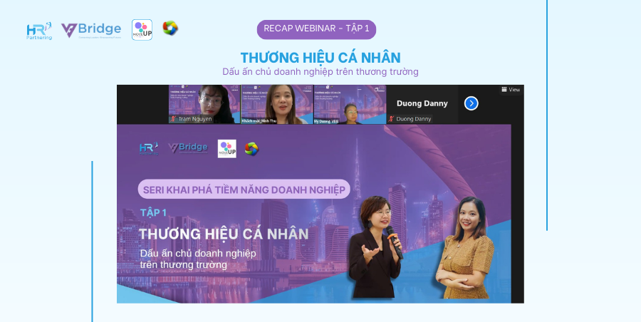 Webinar “Thương hiệu cá nhân – Dấu ấn chủ doanh nghiệp trên thương trường” thuộc khuôn khổ chuỗi hội thảo “Khai mở tiềm năng doanh nghiệp 2024”. Sự kiện được tổ chức dưới sự hợp tác giữa HR Partnering Vietnam và Cộng đồng Doanh nhân Việt (VBizBridge) đã diễn ra thành công tốt đẹp vào 19h30 ngày 5/12/2023 với sự tham gia của gần 30 anh chị thuộc cấp lãnh đạo và quản lý.